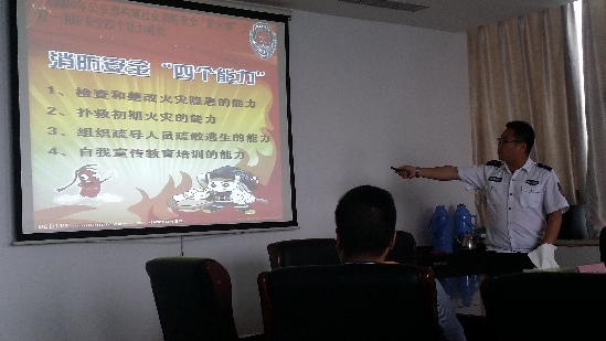 张教员通过大量的典型火灾案例,借助幻灯片,结合工作、生活实际情况,生动详细地为大家讲述了几种灭火器的使用方法、家居防毒防烟面具的正确操作以及火灾面前正确的逃生自救措施。一幅幅因失火造成的悲惨图画,一个个触目惊心的数字,在场的干部职工切身感受到了大火的无情和生命的脆弱。