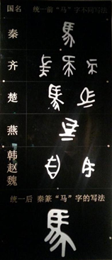 在中国文字博物馆第三展厅文字统一单元,展示有马字由六国文字统一为小篆的大型壁画,通过对具体的字形的对比,可以一目了然展现它的演变过程。