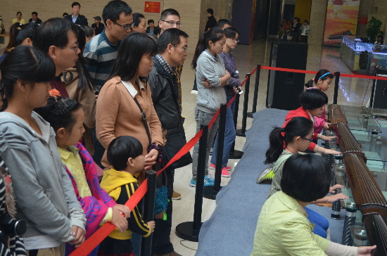 “迎华诞 雅集洛博”系列活动之古琴专场10月1日上午在洛阳博物馆一楼大厅举行。古琴专场作为该系列活动的第一场活动,加之国庆长假的第一天,上午开馆后便有大批游客预约参加活动。该活动特地邀请洛阳大观古琴社的周老师为参与活动的观众进行古琴历史背景、传承等方面的介绍并现场互动学习古琴的基本指法,让古代文人士大夫之间流行的古琴艺术得以在更多的现代人之间流传。