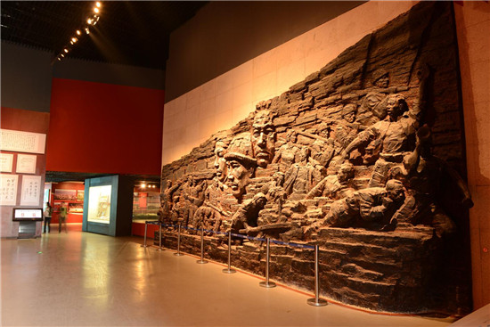 一是序厅。以浅浮雕和雕塑的形式,概述了红旗渠修建的艰辛历程。