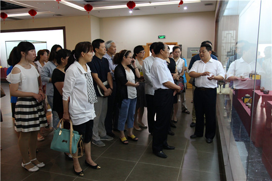 7月11日上午,在安阳博物馆举行了挂牌和开幕仪式。安阳市政协原副主席胡文录、宜兴陶瓷博物馆紫砂赏析教室联盟总监徐光、安阳市文物管理局副局长李晓阳、宜兴紫砂工艺美术大师一行和安阳社会各界紫砂艺术爱好者出席。