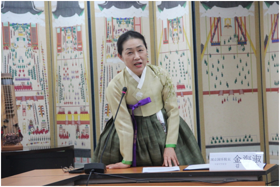 韩国国立国乐院院长金海淑在致辞中说,宾主双方自2013年以来开展了卓有成效的合作、交流,今天签署正式的“合作交流协议书”,将两国的古代音乐、传统音乐更好地研究、传承是两院的共同目标和事业追求,双方的合作不仅会促进两国的音乐文化交流,也会促进东亚地区传统音乐的交流。双方签署“合作协议书”后,两院将就音乐考古研究、音乐史学、传统音乐表演等方面进行共同研究,推进学术研讨、教育及学术出版活动。