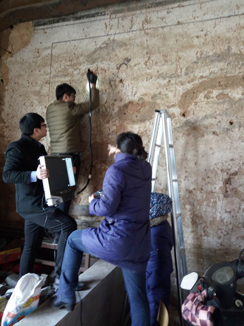 1月23-24日,新安县最低气温达零下11度,几十年不遇的严寒抵依然挡不住文物工作者的步伐。在省保单位洞真观工作现场,新安县文物局工作人员和河南壁画艺术馆的6名壁画保护专业技术人员顶着极寒天气,一丝不苟的坚持开展壁画拍照、检测、取样,病虫害分析等文物保护工作。