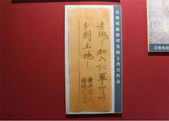 鄂豫皖苏区首府革命博物馆中的苏维埃政府印发的土改宣传品