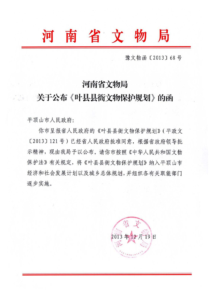 关于公布《叶县县衙文物保护规划》的函