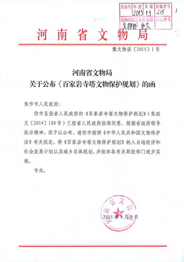 关于公布《宝丰清凉寺汝官窑遗址保护总体规划》的函