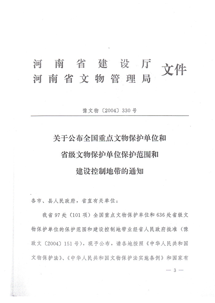 第1至5批全国重点文物保护单位保护范围和建设控制地带公布文件(含龙门石窟)
