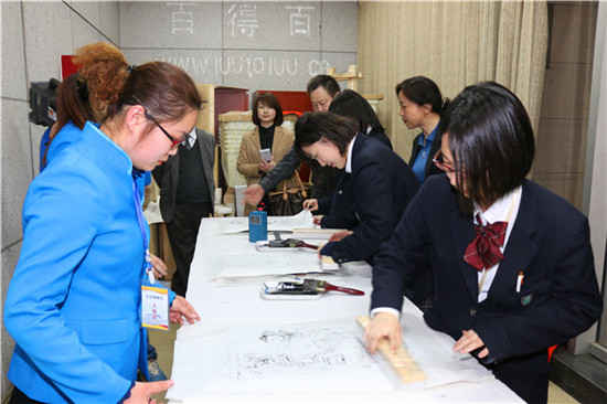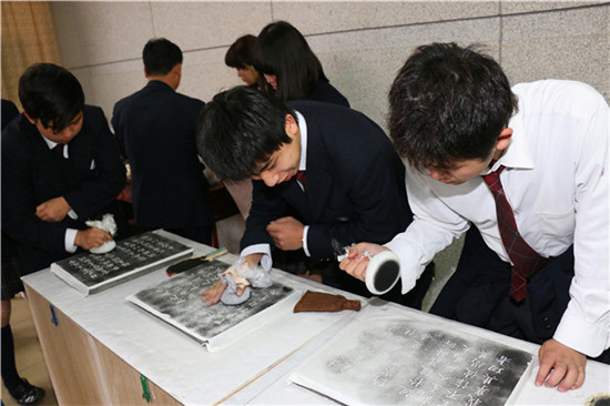 安阳市友好城市日本小田原市新名学园旭丘高等学校教师学生文化体育交流代表团一行12人,为落实两市市长“以青少年交流为始,进而促进各领域交流合作”的指示,受安阳市政府邀请前来访问,于3月27日到安阳博物馆进行参观学习,并进行了碑刻摹拓和木版年画制作等体验活动。