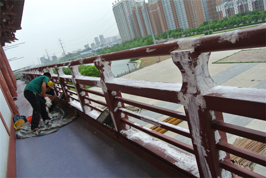 2015年5月5日,洛阳市华美装饰工程有限公司开始进场对定鼎门遗址博物馆进行梳妆打扮。这次主要的工作是对主城楼、东阙楼、西阙楼的墙壁外面、木作部分和城门的修缮及刷漆。而其中刷漆的工作尤为重要和细发。