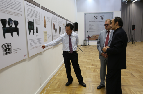 9月26日上午,由中国文字博物馆、中国人民对外友好协会、河南省安阳市人民政府、北京外国语大学、莫斯科国立语言大学和莫斯科国立语言大学孔子学院联合主办的《汉字》境外展——俄罗斯展在莫斯科河畔的艺术者之家展览馆开展。莫斯科国立语言大学副校长苏哈列夫,远东研究所学者东琴柯,莫斯科语言大学孔子学院院长谢列兹聂夫,中国驻俄罗斯大使馆教育处公参赵国成,中国对外友好协会文化交流部主任马小明,中国文字博物馆党委书记、常务副馆长、研究员、中国书协会员冯克坚等政要、专家出席活动。当代中国书画名家言恭达、聂成文、刘颜涛、胡秋萍、韦斯琴及当地的汉字和汉语学者、莫斯科语言大学孔子学院全体师生、莫斯科语言大学的汉语学生及俄方友好人士等出席了开幕式。