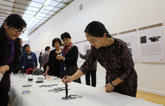 开幕式后各方嘉宾参观了《汉字》和《结晶——中国当代书画名家精品展》,书画家们现场演示创作了书法作品,并与当地友人进行了互动交流。