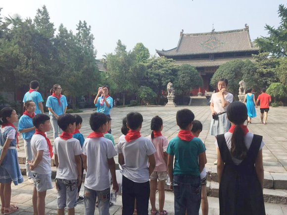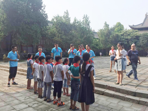 7月31日下午,来自洛阳市伊滨区寇店镇五龙小学的十余位留守儿童,在河南科技大学动物科技学院阳光天使义务支教团成员的带领下到洛阳民俗博物馆参观学习。