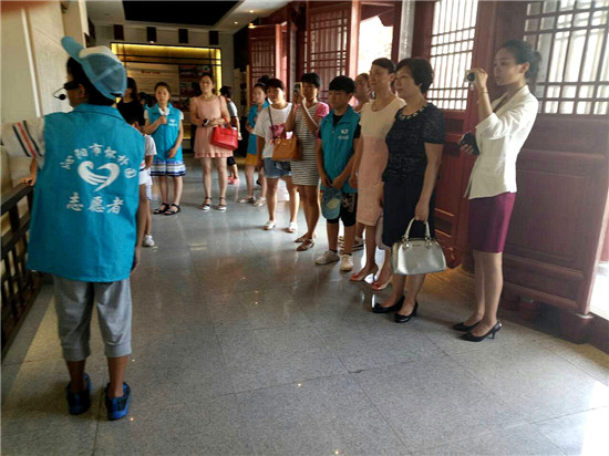 7月29日,走进沁阳市怀朴园的游客们惊喜地发现,园内出现了一个个身着蓝色志愿者服装的“小萌娃”。原来,这是怀朴园“小小讲解员”经过为期三周的培训,迎来的第一场“实战”考核,由市博物馆专家组成的考核团,现场见证他们的培训成果。而“小小讲解员”也吸引了众多参观者驻足,“萌娃们”虽然稚气未脱,但是吐字清晰、手势标准,讲解时有模有样,一招一式举手投足间,甚是招人喜爱,赢得了在场宾客的阵阵掌声。