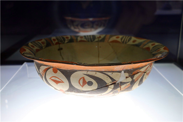 最近刚刚发掘出土的一件精美彩陶盆,有“钜”的痕迹。