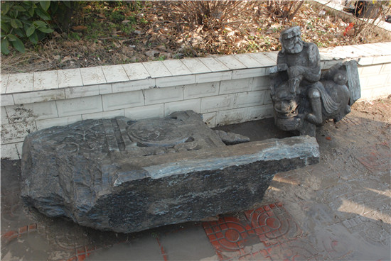 日前,息县谯楼办事处龙门巷南段下水道施工地发现胡人骑狮夹柱石建筑构件,夹柱石长方形通长203、通宽74、厚30cm,石质系产于当地濮公山青石,整体雕刻为胡人骑狮立于须弥基座抱鼓石上,狮身与基座断裂,人鼻、人手、狮鼻及基座底部残缺,保存状况基本完整,雕刻技法为明清时代风格。