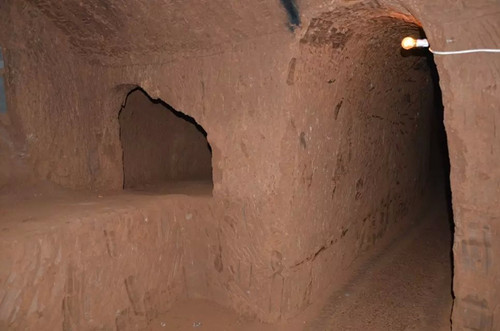 土古洞村有两处古代土洞,走进洞中看到的是大洞、小洞、深洞、浅洞,洞连洞、洞套洞,曲曲弯弯,高高低低,洞洞相连,洞内蜿蜒曲折,左右分叉,神秘莫测,犹如迷宫。现清理出来近500米的坑道里,有20多间土室,可以住人,有小型粮仓、厨房,坑道墙壁上有小龛,俗语灯台,用以在洞内照明,真有点进入高家庄地道的感觉。土古洞村的郑向东书记给我们讲了他们村开发乡村游的整体思路和设想,期待在不久的将来,土古洞会别有洞天。