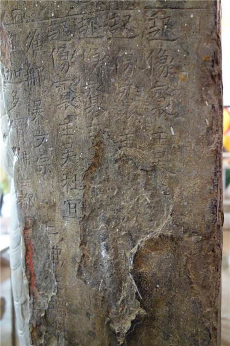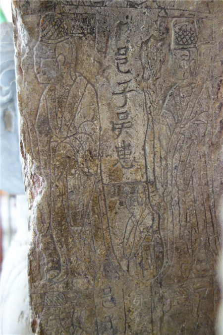 礼佛图是表现佛教信徒对佛敬奉、顶礼膜拜的场景和图像。维那,又叫都维那,是寺院中掌管众僧杂事的僧官。造像碑左侧面,上部为四足青龙,其下是礼佛图,并刻有“邑子吴惠”、“邑子吴显珍”、“维那李盖世”礼佛的人名。碑右侧面上部亦为四足青龙,下有:“威远将军辽城县太守吴头”礼佛人名字和礼佛图。碑座刻有两组礼佛图,左边为“都维那吴显望”,右边为“都邑主吴发柱”。