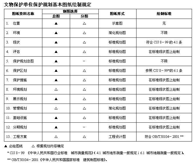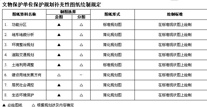 (九) 保护规划补充性图纸的绘制内容可分别参照《城市规划编制办法实施细则》(1995)、《风景名胜区规划规范》GB 50298-1999、《历史文化名城保护规划编制要求》(1994)、历史文化名城保护规划和村镇规划等技术文件的对应条款。